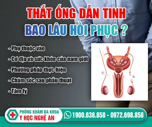 Thắt ống dẫn tinh bao lâu hồi phục? là vấn đề được nhiều nam giới quan tâm. Bác sĩ cho biết thời gian hồi phục sau khi thực hiện thắt ống dẫn tinh dài hay ngắn còn phụ thuộc vào nhiều yếu tố như cơ...