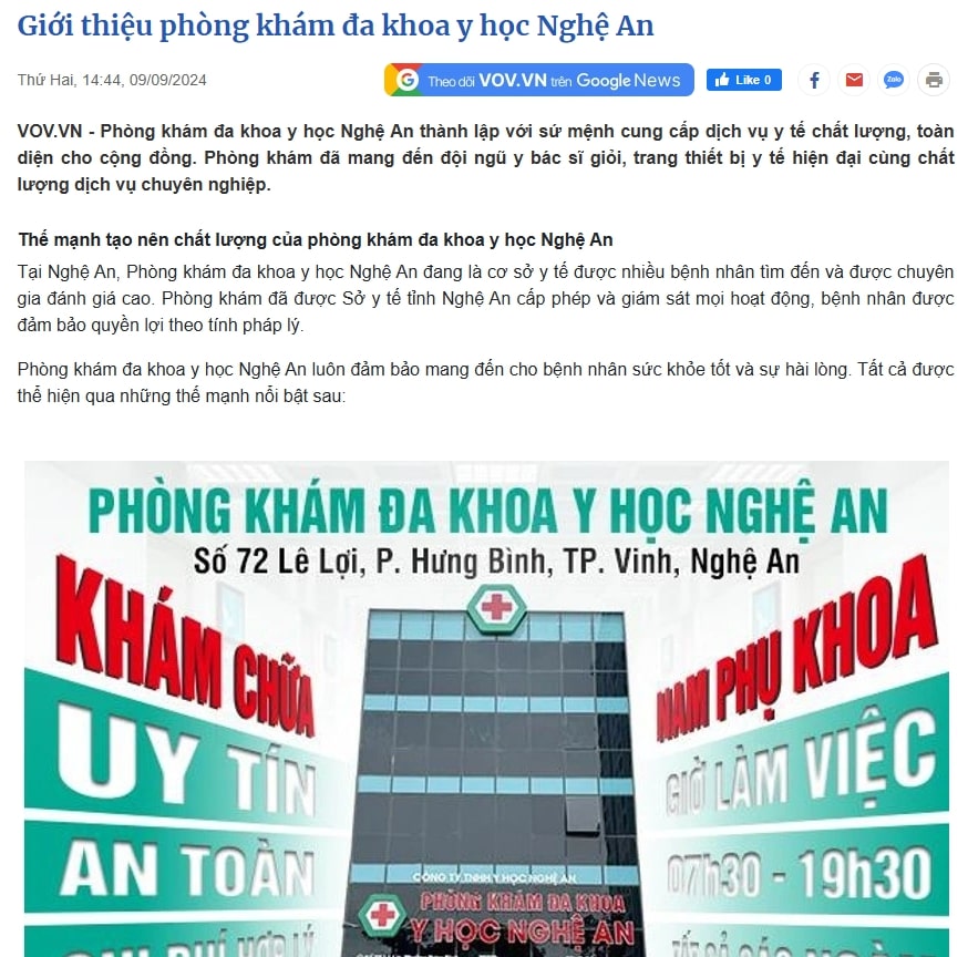 Báo VOV.vn giới thiệu về những thế mạnh của phòng khám đa khoa Y học Nghệ An